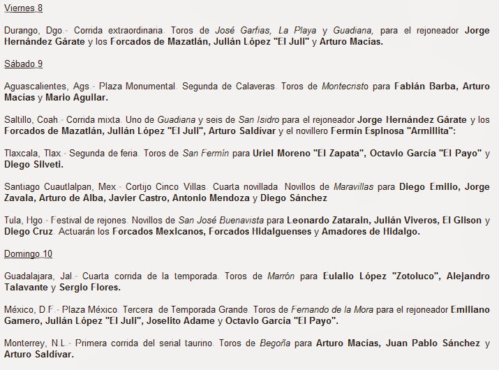españoles que están actuando en plazas Americanas durante la emisión de este